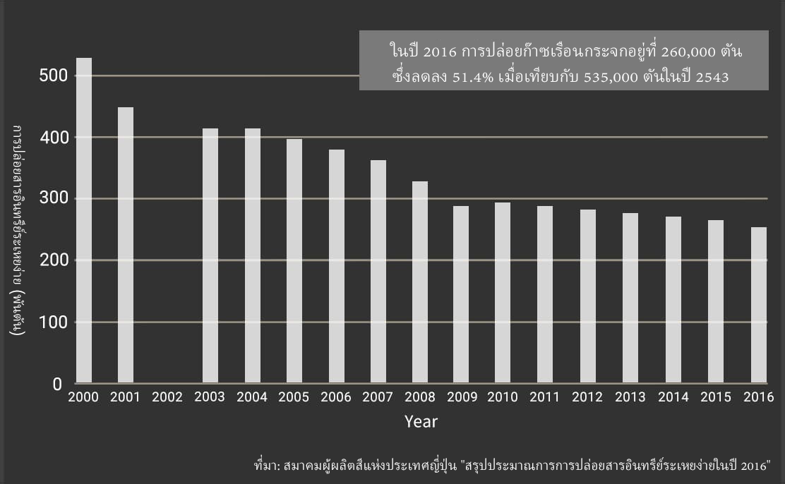 แนวโน้มการปล่อยสารอินทรีย์ระเหยง่ายจากสี (ระหว่างพ่นสี) (ในญี่ปุ่น)