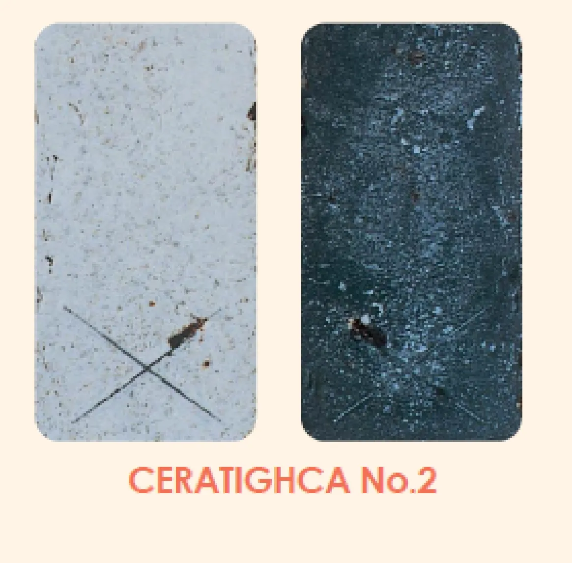 เนื่องจากมีความแข็งแรงพื้นผิวสูง วัสดุพื้นผิวของ CERATIGHCA No.2 จึงไม่ร่วงหล่นจากความเสียหายทางกายภาพเล็กน้อย เนื่องจาก CERATIGHCA No.2 ไม่กระจายฝุ่นบนพื้นผิว จึงเหมาะสำหรับสถานพยาบาล ร้านอาหาร โรงงานแปรรูปอาหาร ฯลฯ ที่ต้องการป้องกันฝุ่น