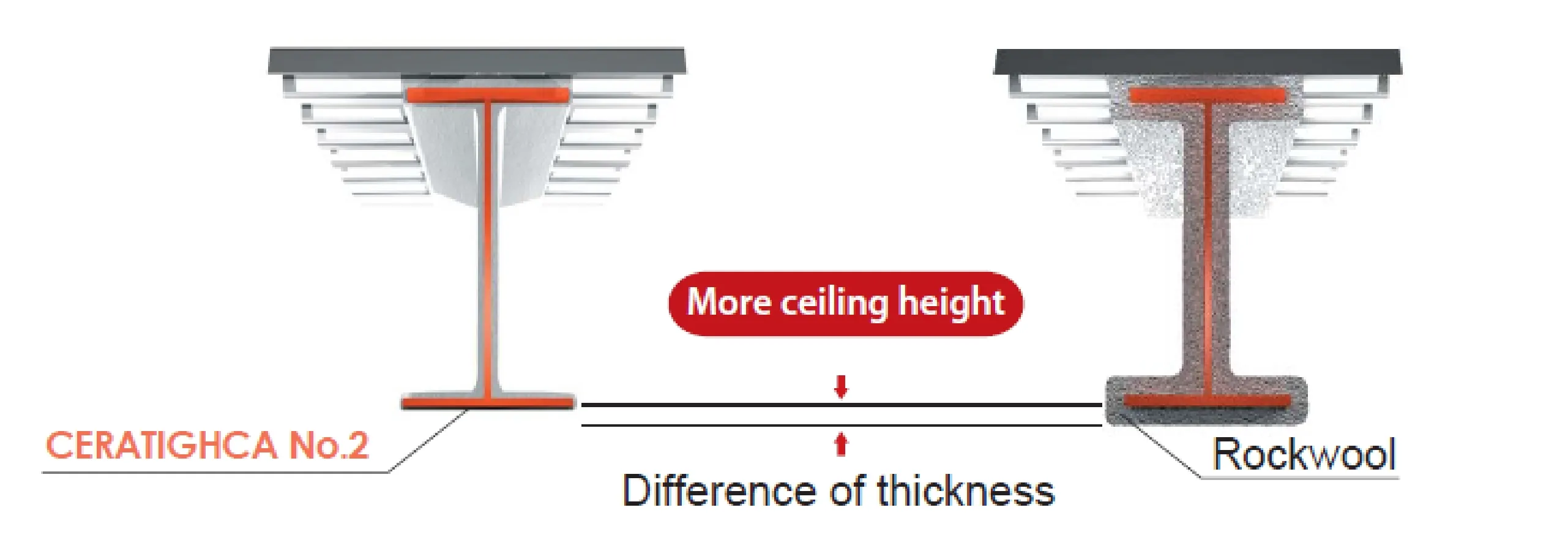 เพื่อปรับปรุงประสิทธิภาพการทนไฟของคลังสินค้าอุณหภูมิต่ำ (5°C) ให้ใช้ CERATIGHCA NO. 2 (หนา 10 มม.) บนพื้นผิวฉนวนความร้อนที่เคลือบด้วยสารเคลือบทนไฟอย่างง่าย